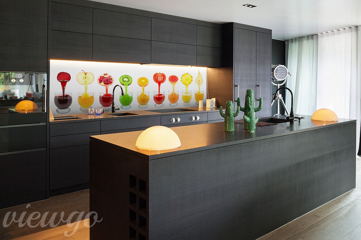 Jeżeli unikasz wszelkich form banału, z pewnością do gustu przypadnie Ci ta ścienna ozdoba. Grafika przedstawia różnorodne, bardzo kolorowe owoce, z których wyciskany jest pełen witamin sok. Tego typu kuchenna fototapeta to mobilizacja do zadbania o swoje lepsze samopoczucie i postawienia na zdrowy styl życia. Z pewnością się sprawdzi.
