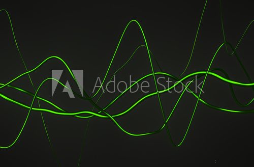 Fototapeta Abstract 3d rendering of glossy wavy lines. Dark background with surreal waves in empty space. Futuristic shape.