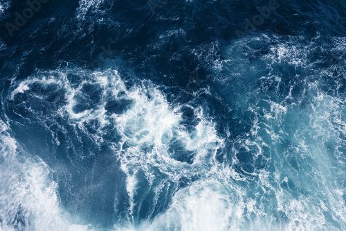Fototapeta - Top view on blue ocean waves. Nature background.
