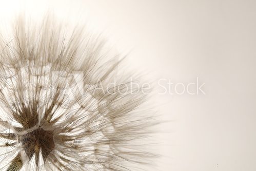 Fototapeta Beautiful fluffy dandelion flower on beige background, closeup. Space for text