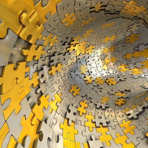 Fototapeta - Tunnel made of gold and silver puzzles.