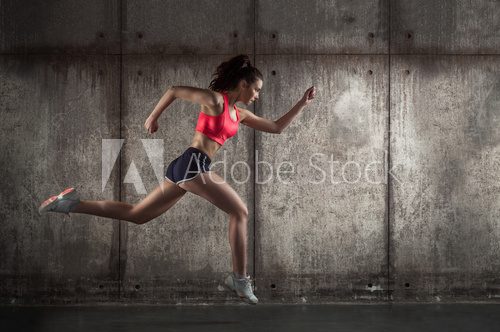 Fototapeta - Side view of running woman