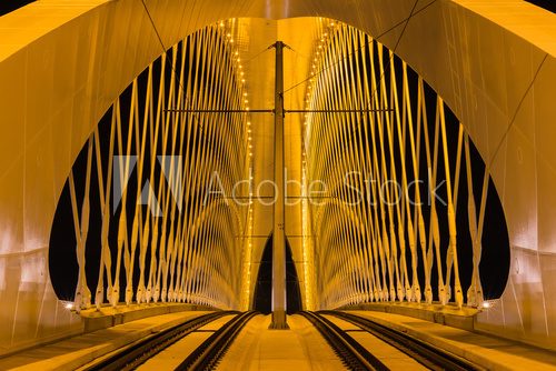 Fototapeta Night view of the Troja Bridge from the river Vltava, Trojsky most, Prague, Czech republic