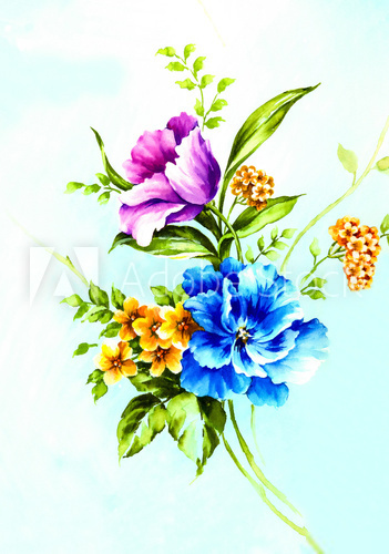 Fototapeta 모란과 양귀비와 수국이 어우러진 꽃 무리와 줄기