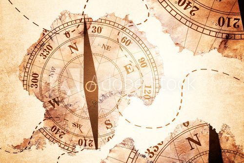 Fototapeta Antarctica map and Compass old paper Over White Background, Elements of this image furnished by NASA (Satellite map of Antarctica)